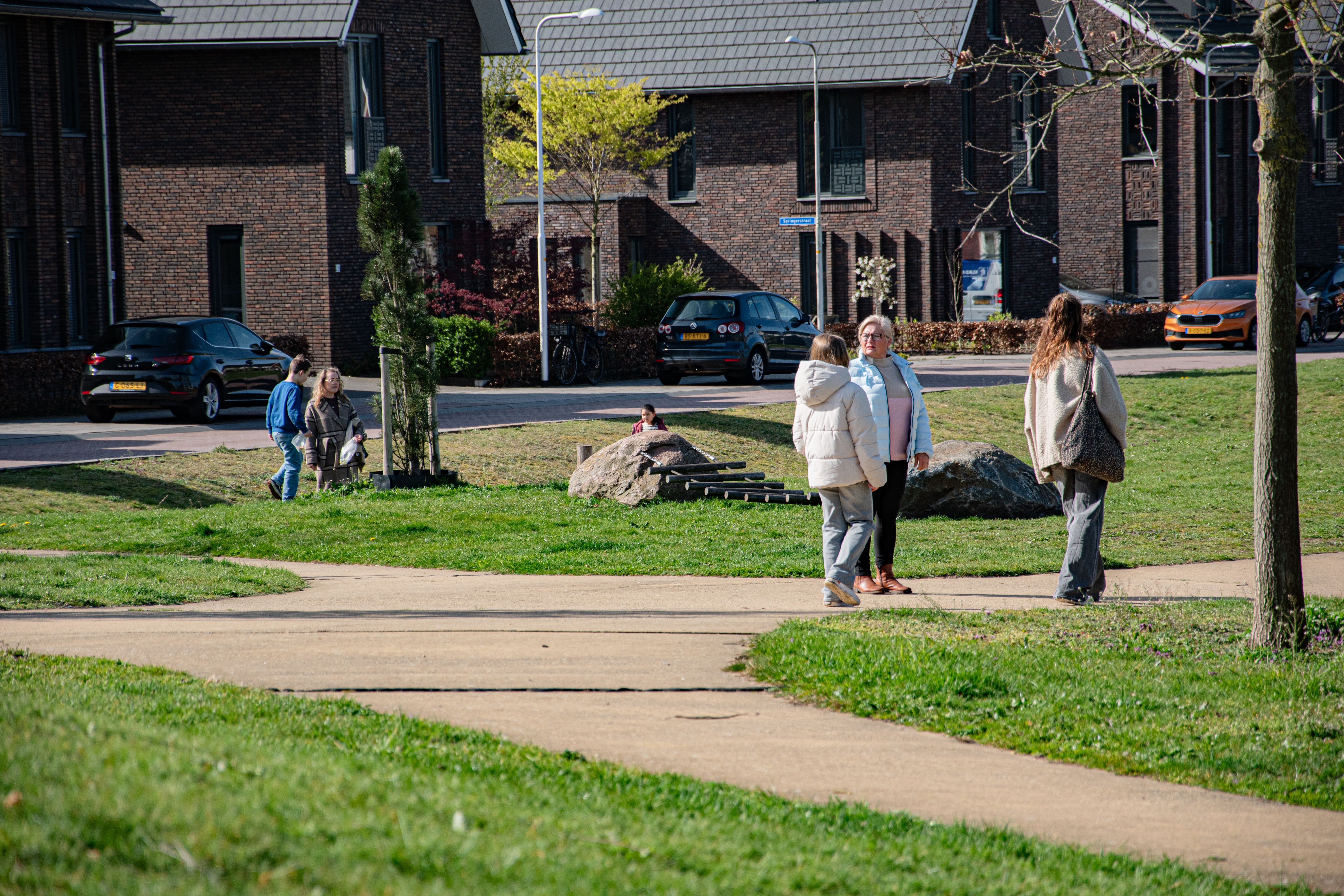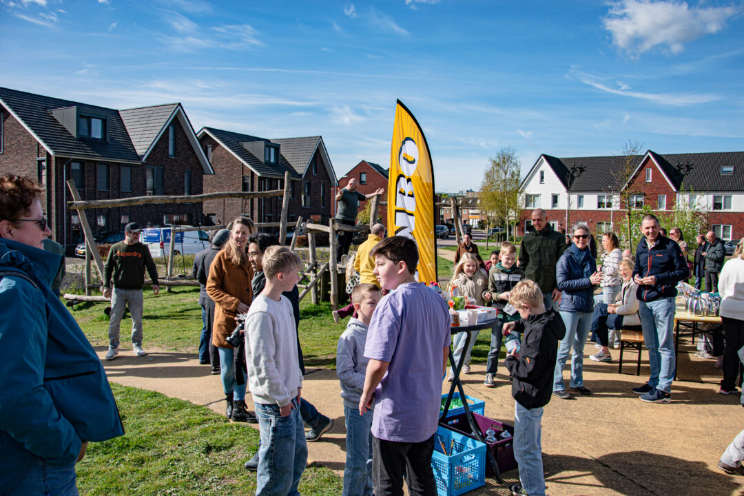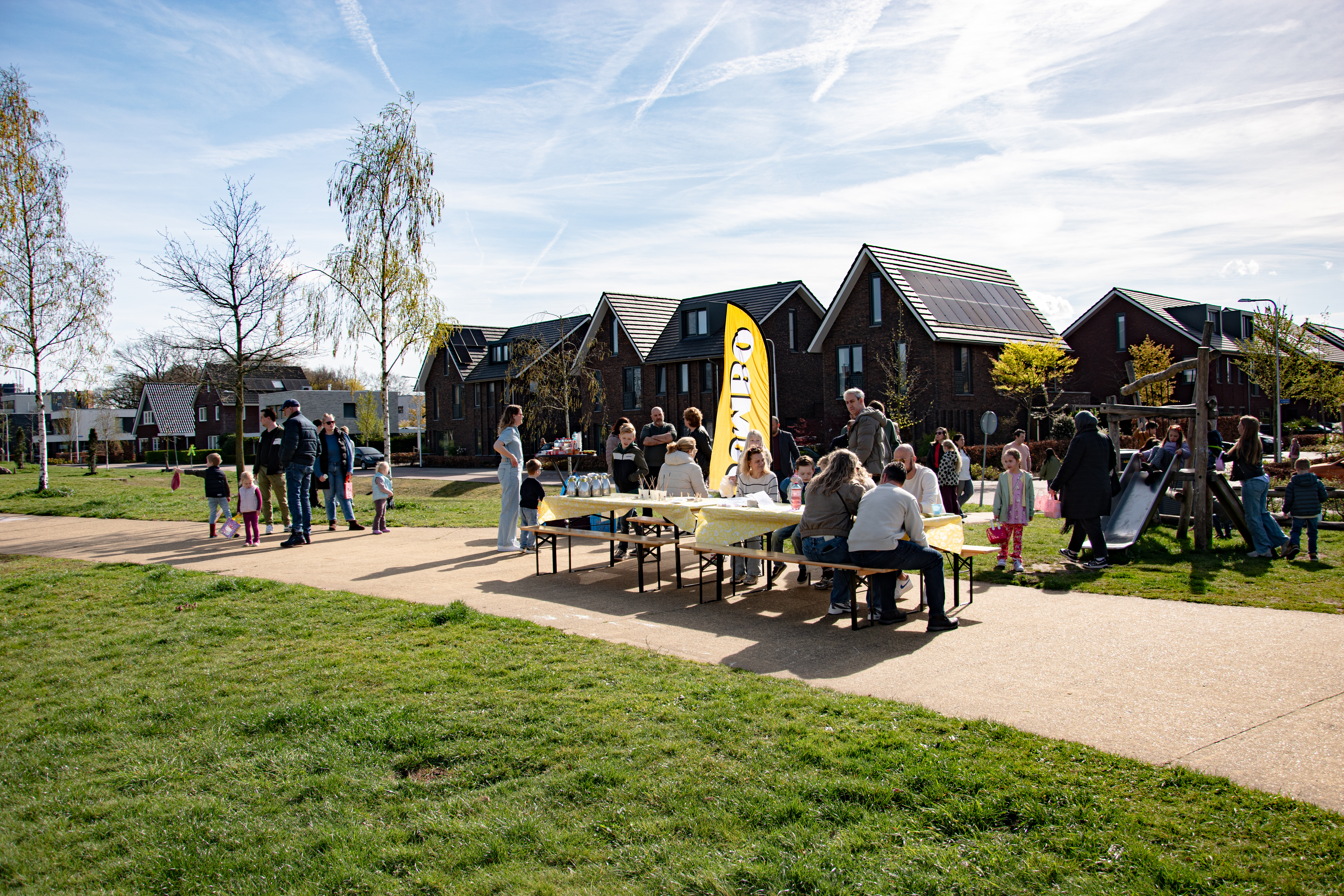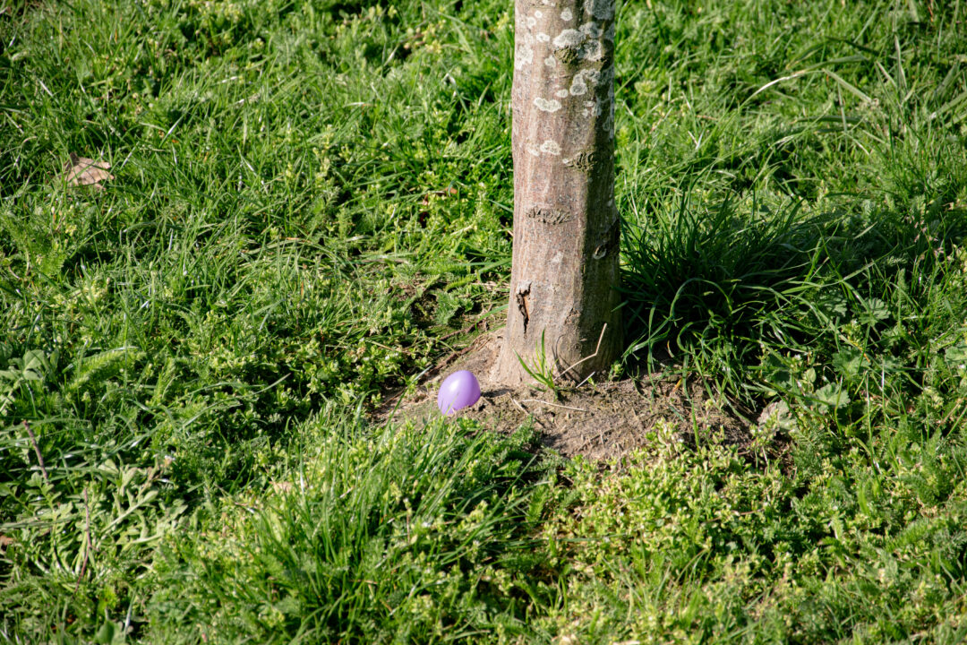 Na een kort dankwoord aan alle betrokkenen en sponsoren, gingen ongeveer 55 kinderen samen met hun ouders op zoek naar de verstopte plastic eieren in het park. Er werd fanatiek gezocht en volop genoten.
